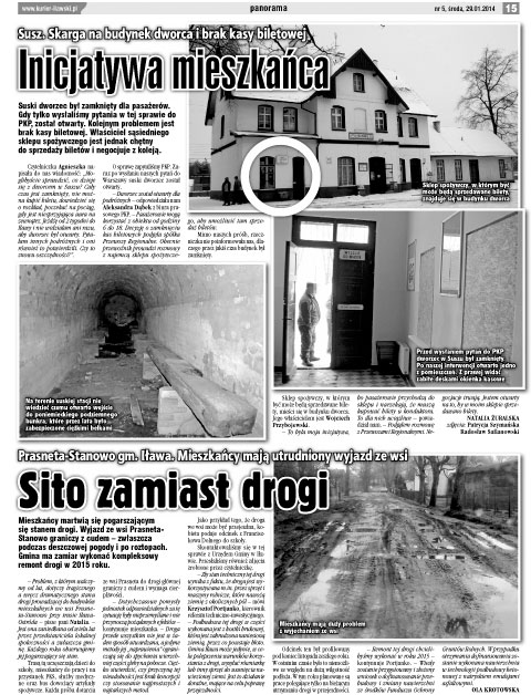 Dworzec kolejowy w Suszu był zamknięty dla pasażerów. Gdy tylko wysłaliśmy pytania w tej sprawie do PKP, został otwarty. Kolejnym problemem jest brak kasy biletowej. Właściciel sąsiedniego sklepu spożywczego jest jednak chętny do sprzedaży biletów i negocjuje z koleją.