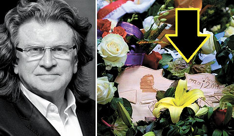 Niesamowity akcent z naszego regionu iławskiego pojawił się na pogrzebie Zbigniewa Wodeckiego. Oto wśród kwiatów zauważyć można było świeżo rzeźbione skrzypce z podobizną muzyka i napisem „Iława maj 2017”.