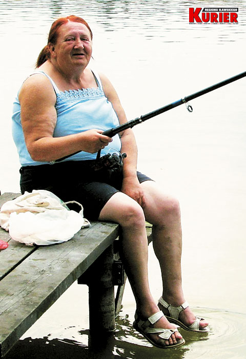 Pani Renata: – Lubię słońce, nie jest dla mnie groźne i specjalnie się przed nim nie chronię. Taki dzień jak dzisiaj najlepiej spędzić nad wodą, a ja od 4 nad ranem łowię rybki. Hobby tym zaraził mnie mój kolega. Oczywiście nie zapominam o napojach, mam herbatkę z cytryną.