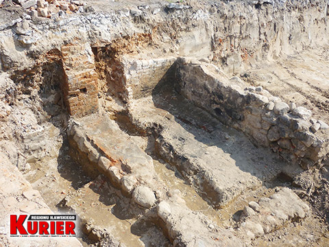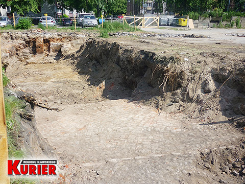 Już pierwsze ruchy koparki pokazały, że będzie ciekawie. Roboty ziemne odsłoniły fragment brukowanej ulicy oraz fragmenty piwnic i muru z kamienia naturalnego. Z wykopów wydobyto stare butelki i fragmenty porcelany.