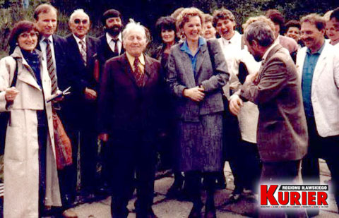 Spotkanie ukochanej klasy profesora (trzeci z lewej), Ośrodek Kolejarza, 1990 r. Senior spotkania – profesor Stanisław Hertel