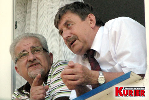 oglądał mecz z okna na piętrze budynku klubowego. Obok starosta iławski Maciej Rygielski)