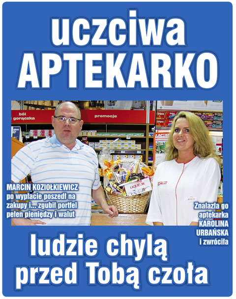 Aptekarka, która zwróciła zgubę, to KAROLINA URBAŃSKA z Kisielic.