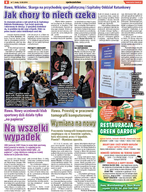 Zwróciliśmy się do Tomasza Więcka, rzecznika prasowego iławskiego szpitala, aby wyjaśnił, z jakiego powodu chirurg ogólny nie przyjmował pacjentów od godz. 7:30, jak napisane jest na drzwiach oraz jak doszło do sytuacji, że pacjent, mimo umówionej wizyty, został odesłany do innego specjalisty. Pytanie przesłaliśmy 3 stycznia. Rzecznik potrzebował pięciu tygodniu, aby odesłać nam odpowiedzi.