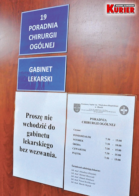 O umówionej godzinie chirurg ogólny nie przyjmował.