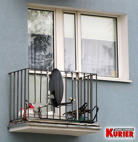 policjanci na balkonie przy ul. Grunwaldzkiej