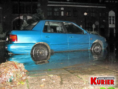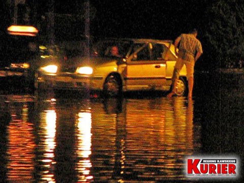 Większość kierowców widząc rozlewisko wycofywało na dojazdowej, jednokierunkowej ulicy Broniewskiego. Jeden z nich próbował przedrzeć się przez gigantyczną kałużę. Przecenił możliwości swojego samochodu, który zgasł na samym środku.