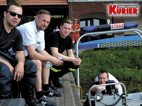 Strażacy zabezpieczający akwen Dużego Jezioraka