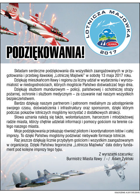 Szalone podniebne akrobacje, brawurowe przeloty na niskich wysokościach oraz pokazy sprzętu bojowego i pojazdów wojskowych przyciągnęły do Iławy w sobotę 13 maja tłumy miłośników lotnictwa i militariów. Całości dopełniła wystawa modeli, lotnicze inspiracje z klocków oraz zabawy dla najmłodszych i koncerty muzyczne.