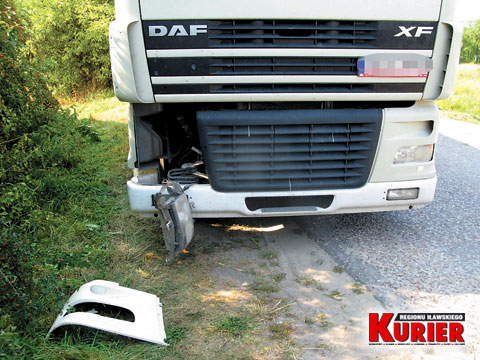 Po uderzeniu z TIR-a odpadł element karoserii