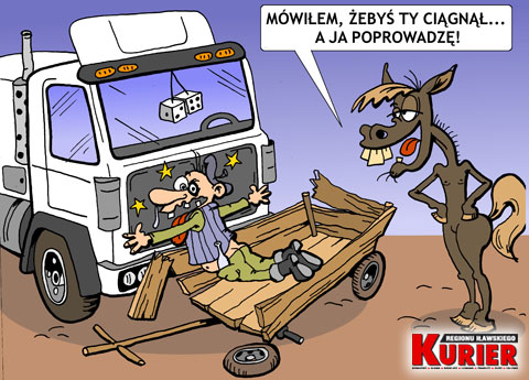 Niecodzienna kolizja drogowa. Kierujący zaprzęgiem konnym woźnica uderzył w stojącego na poboczu TIR-a. Policjantom tłumaczył potem, że jego koń się spłoszył. Tylko czemu po kraksie woźnica poszedł do domu? Faktem jest, że był pijany.