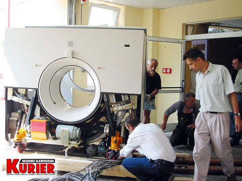 Szpital w Iławie, 2003 rok. Montaż tomografu z Holandii.