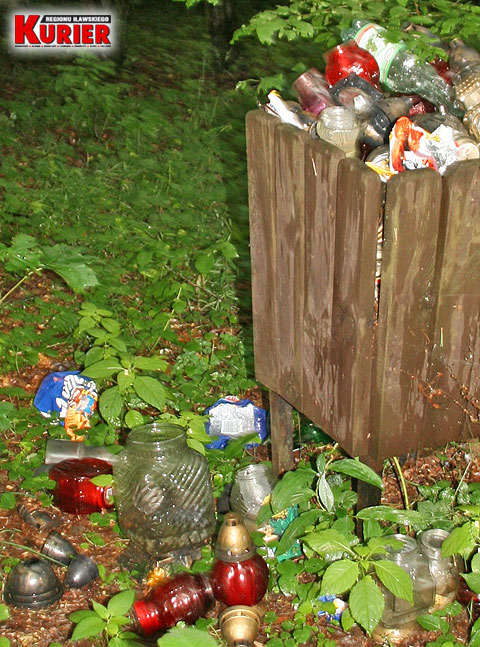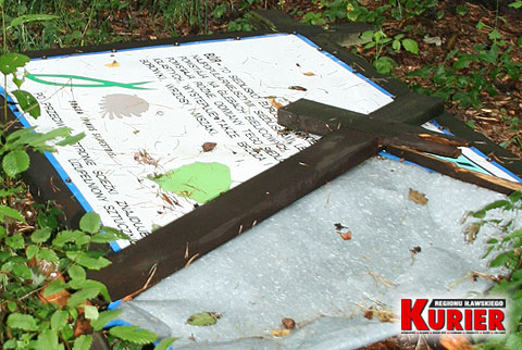 Znicze, które jeszcze niedawno paliły się pod tablicą, wylądowały w koszu na śmieci. Tablica obok też została przewrócona, a na końcu ścieżki dydaktycznej, przy samym jeziorze Silm, zniszczono ławkę i porozrzucano śmieci.