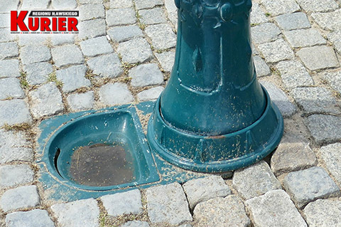 Z hydrantu przy rzece Iławce również nie płynie woda, a dodatkowo kostka wokół niego niedawno się zapadła.