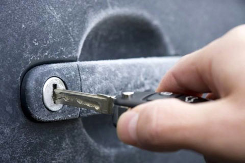Uwaga! Nie polecamy zwykłych odmrażaczy na bazie alkoholu, które wypłukują smar wewnątrz zamka.