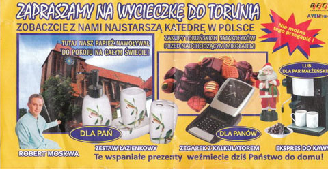 – Czy 16 złotych za wycieczkę to tanio?! – pyta retorycznie. Wszyscy odpowiadają gromkim „TAAAK!”. Jak więc dostając wycieczkę za tak marne pieniądze nie obejrzeć prezentacji produktów?...