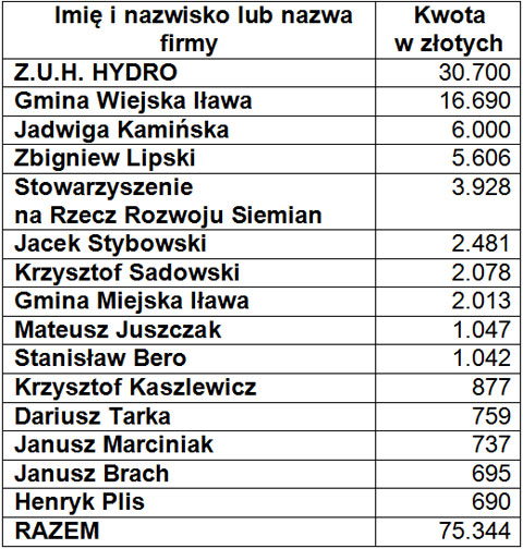 – Firmie „HYDRO” umorzyliśmy podatek z powodu poniesienia przez nią bardzo dużych kosztów na zakup urządzeń wodno-kanalizacyjnych, które spowodowały pogorszenie wyniku finansowego – mówi wójt Krzysztof Harmaciński. – Jeśli chodzi o Gminę Wiejską Iława, to jest to kwestia dotycząca naszych obiektów, a konkretnie świetlic wiejskich, które są opodatkowane. Jadwidze Kamińskiej umorzyliśmy podatek z powodu pogorszenia się sytuacji finansowej, która mogłaby skutkować likwidacją miejsc pracy.