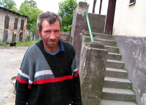 Za jego plecami podwórko, na którym kilka dni temu