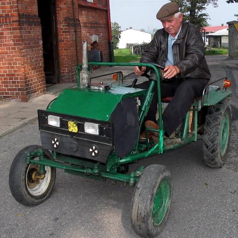 Ciągnik rozwija prędkość ok.10-15 km/h i mieszkaniec może legalnie poruszać się nim po wiejskich drogach.