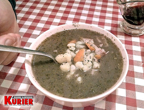 Wracając do gęsiny. Wystrój wnętrza restauracji jest tak podobny do innych w Iławie, że ktoś pijany mógłby stracić orientację, w której akurat jest, patrząc jedynie na kolor ścian, stoły i krzesła. Jakość rosołu pozostawiam na inny felieton. Muszę tam wpaść jeszcze ze dwa razy, by wyrobić sobie opinię. Do zupy zamówiłem jeszcze szare kluski, które były bardzo smaczne, ale miały jedną wadę. Było ich za mało. W Lubawie, co kiedyś opisałem, klusek na talerzu jest cała góra.