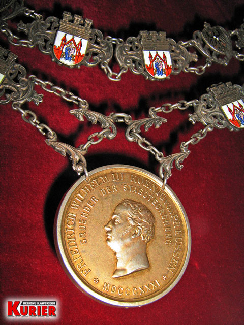 Pogoda jest zmienna, nie każdy ma zdolności kulinarne, nie każdego interesuje produkcja sera. Proponuję więc rozrywkę na miarę Pana Samochodzika. Wielka tajemnica do rozwiązania tuż pod nosem. Dziesięć lat temu przedwojenny łańcuch burmistrza Deutsch Eylau został uzupełniony o medal. Jak się wydawało, łańcuch jest kompletny. Czekając któregoś dnia pod drzwiami burmistrza Żylińskiego, rzuciłem okiem na ten skarb. Nie jestem jubilerem, ale moim zdaniem medal nie pasuje do łańcucha! Brakuje jakiejś części, być może kółeczek na których medal wisiał, może jakiejś większej części?