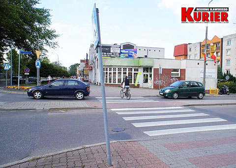 Prawidłowo jadąca rowerzystka w tym samym miejscu.