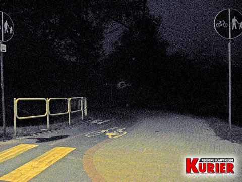 „Osiem rowerów” mnie zawiadomiło, pojechałem po 22 – ciemno jak w lesie, jak na polach Mazowsza o zmroku! Pierwszą zaświeconą latarnię mamy tam po ponad 800 metrach, na ostatniej prostej szlaku, na wysokości ulicy Kajki doświadczamy promyka jasności!