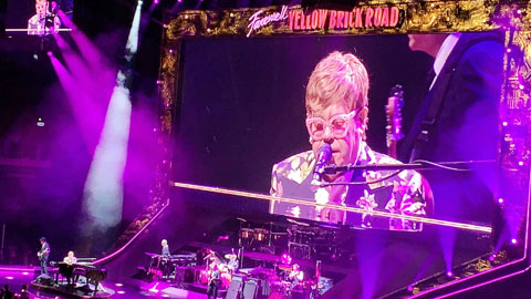 Dlatego Elton za spontanicznie nie wyglądał, pomachał, usłyszał te oklaski, wszedł jego pięcioosobowy zespół i zakasują rękawy – jadźta chłopaki, chciało się powiedzieć! To ponoć jego pożegnalne tournee, do 2020 roku, potem chce odpocząć z adoptowanymi dziećmi i mężem – na Zachodzie geje mogą brać ślub, tu regulacje z po I wojny. No i gra, ale głos nie ten – pomaga mu perkusista w wyższych tonach, jeden kawałek znany, trzy nieznane – najpierw ballady, w drugiej części rock, przyspieszają. Fotki się pstryka, dziękuje, Elton coś tam nawija, opowiada, średnio udanie dowcipkuje. Wałęsa na telebimie, jakieś inne historyjki życiowe, w sumie video-otoczka i efekty 5/10. Czuje się brak rozentuzjazmowania, ale pacynka znana z telewizji, jak papież czy Trump, mam go na żywo, tu, oto!