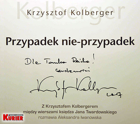 Podczas spotkania promocyjnego wiersze czytał Piotr Adamczyk, a wywiad z Kolbergerem prowadziła jego była żona Anna Romantowska. Przyznam, że byłem tym zaskoczony. Nie sądziłem, że pani Anna zdobędzie się na tak wielki gest w kierunku byłego męża. Krzysztof jak zwykle niewiele mówił. Widać, że był tym spotkaniem z ludźmi poruszony.