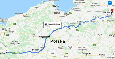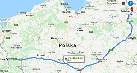ze Świecka do Budziska po A2 i S8 (Via Baltica).