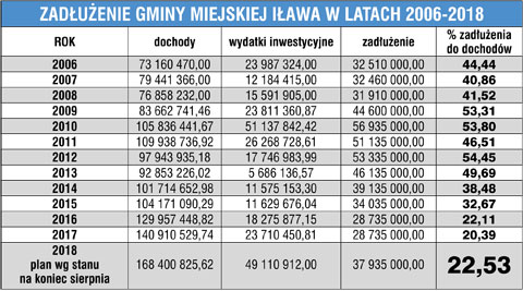 Poniżej przedstawiam szanownym Czytelnikom – i nie tylko iławianom – zadłużenie Miasta Iławy na przestrzeni kilku kadencji od roku 2006 po bieżący 2018 rok.