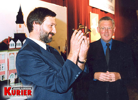 1999 rok. Ówczesny burmistrz Iławy odbiera